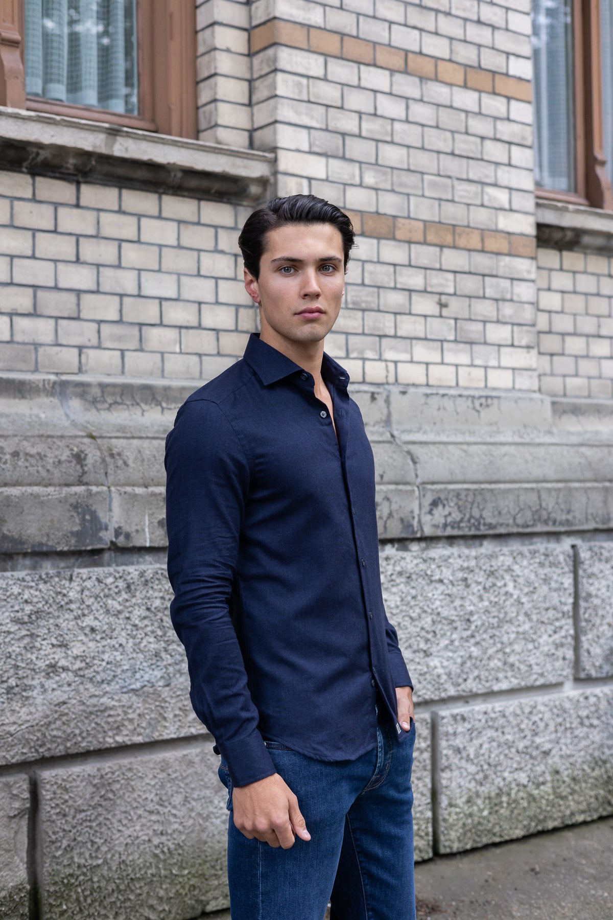 Man Shirt fra Sonrisa. En myk og behagelig skjorte fra italienske Sonrisa. Den har en smal passform, og knappelukking foran. Denne kan brukes til både uformelle og formelle anledninger.