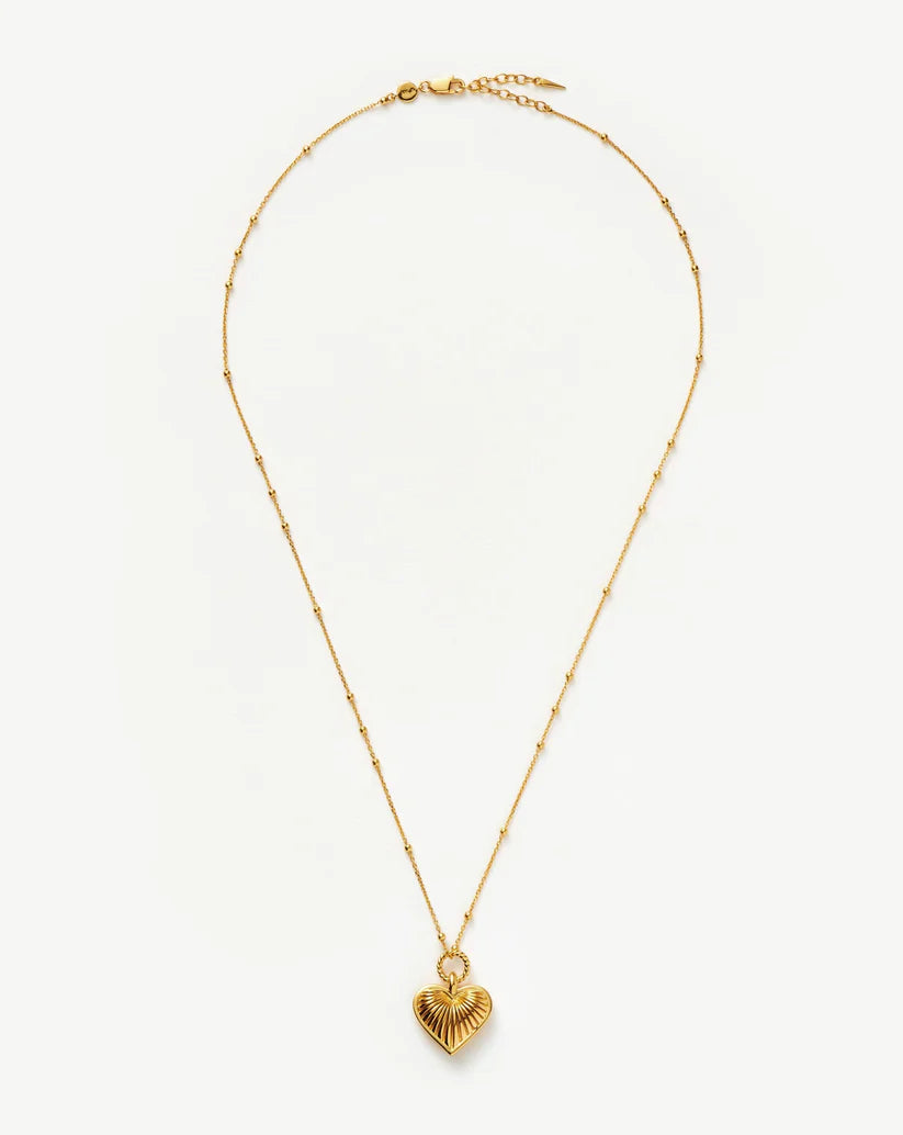 Dette nydelige smykket kombinerer et delikat kjededesign med et vakkert puffet hjerteanheng i gull. Anhenget har vår karakteristiske rillete struktur og en tvunnet ringdetalj. Perfekt alene – eller lagvis sammen med kortere smykker eller en tynn choker.