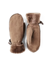 En varmende vott i mykeste lammeskinn semsket med rett ull for et sofistikert uttrykk. Den semskede siden vender utover, mens den silkemyke ullfôringen omslutter hånden i behagelig varme. Vakre detaljer og en bred, brettet lammeskinnskant gir et subtilt preg av luksus på kalde vinterdager. Votten er laget av eksklusivt lammeskinn semsket med rett ull og er perfekt for kalde vinterdager. En elastisk søm rundt håndleddet gir god passform, mens den brede mansjetten med brettet lammeskinnskant tilfører et elegant uttrykk. En dekorativ snøring med preget Hestra-skjold ved håndleddet fullfører designet.