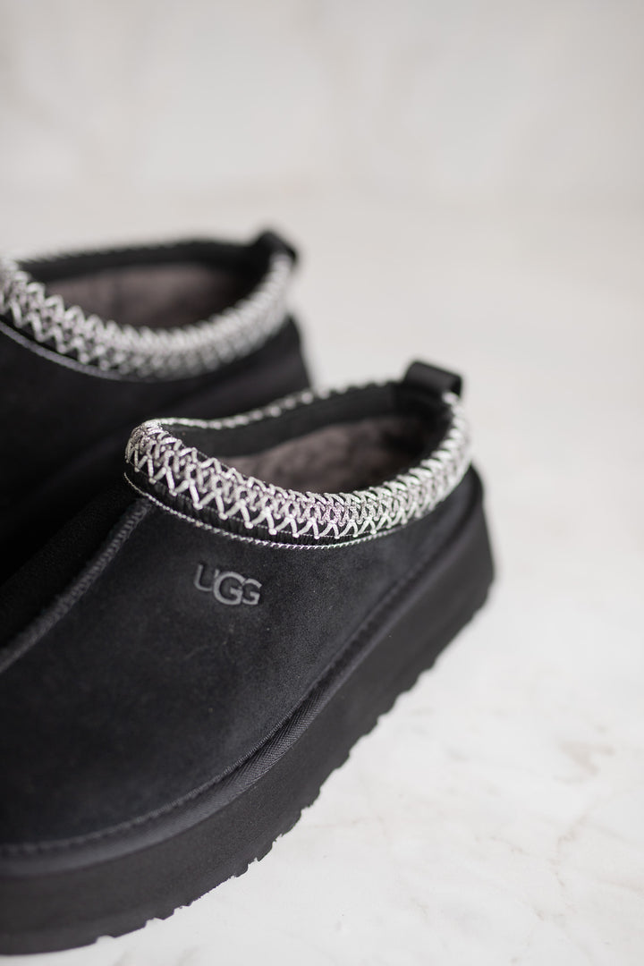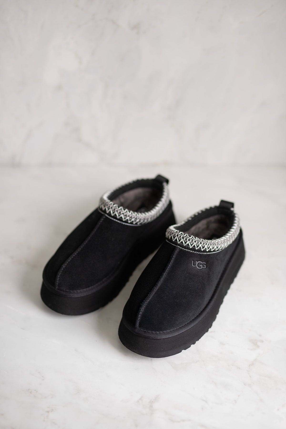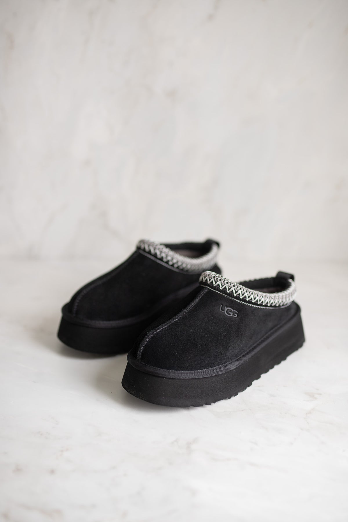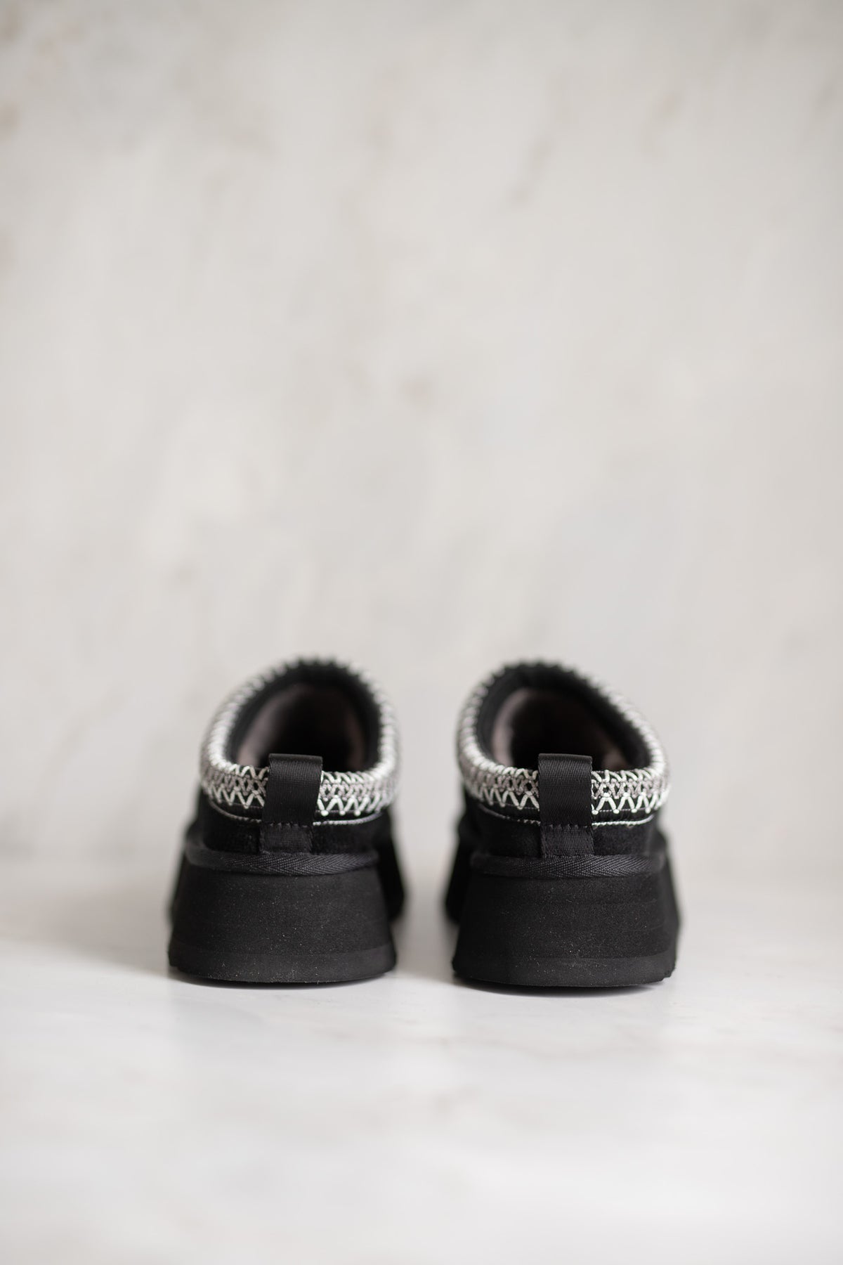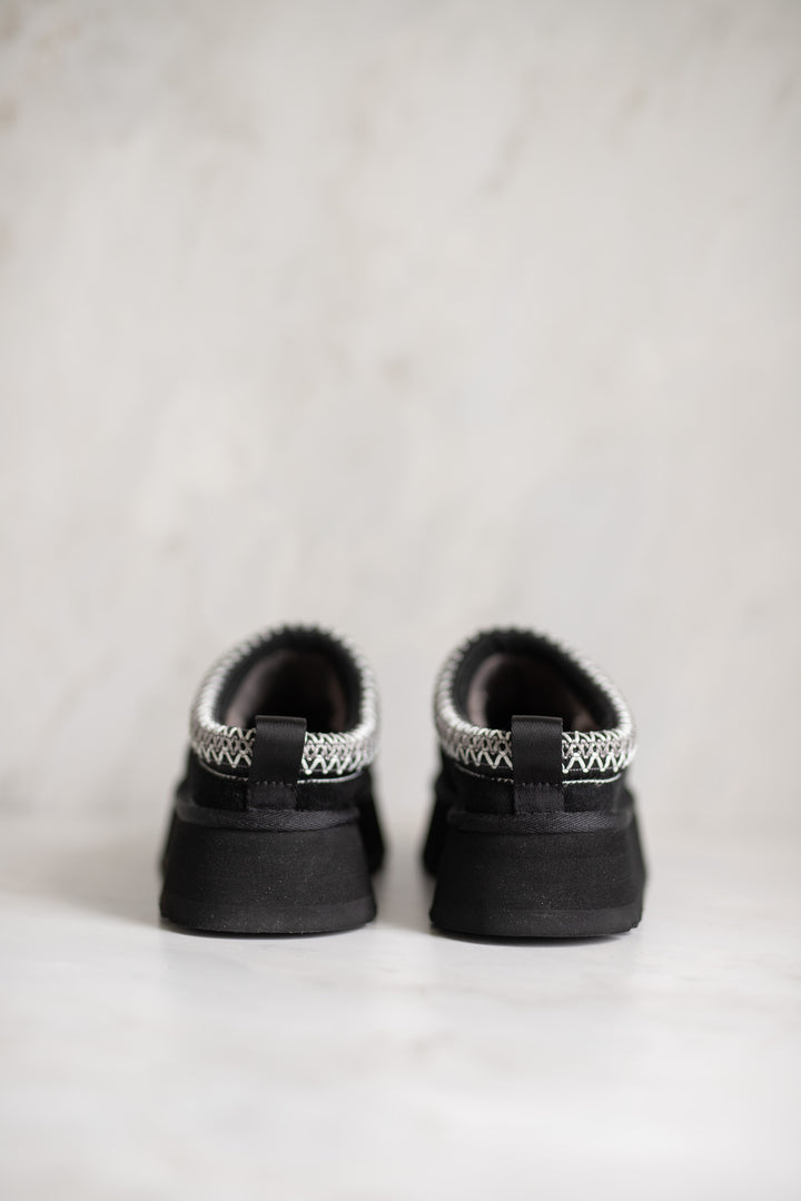 W Tazz II fra Ugg. Sesongens must-have. Tøflene har et mykt ullfôr som holder føttene dine varme og komfortable hele dagen. Slip-on silhuetten lar deg enkelt ta skoene av eller på etter behov, og har en nydelig brodert flette på kanten som skaper et unikt og stilig uttrykk. Skoene har en slitesterk yttersåle som gjør at de egner seg like godt ute, som inne.