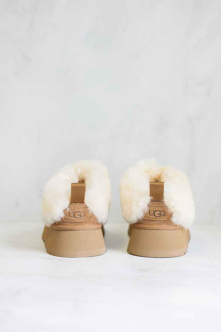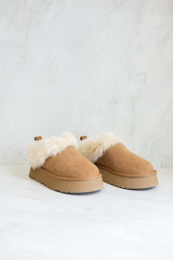 W Tazzelle fra Ugg. Denne eksklusive tøffelen kombinerer det beste fra to verdener: luksuriøs mykhet og moderne stil - perfekt for både innendørs bruk og rolige turer utendørs. Tazzelle er laget av høykvalitets semsket skinn som gir et elegant, tidløst uttrykk og føles like eksklusivt som det ser ut. Den faste mansjetten og hele innersiden er fôret med ekte saueskinn - kjent for sin varme, mykhet og evne til å regulere temperatur, slik at føttene dine holder seg komfortable året rundt.