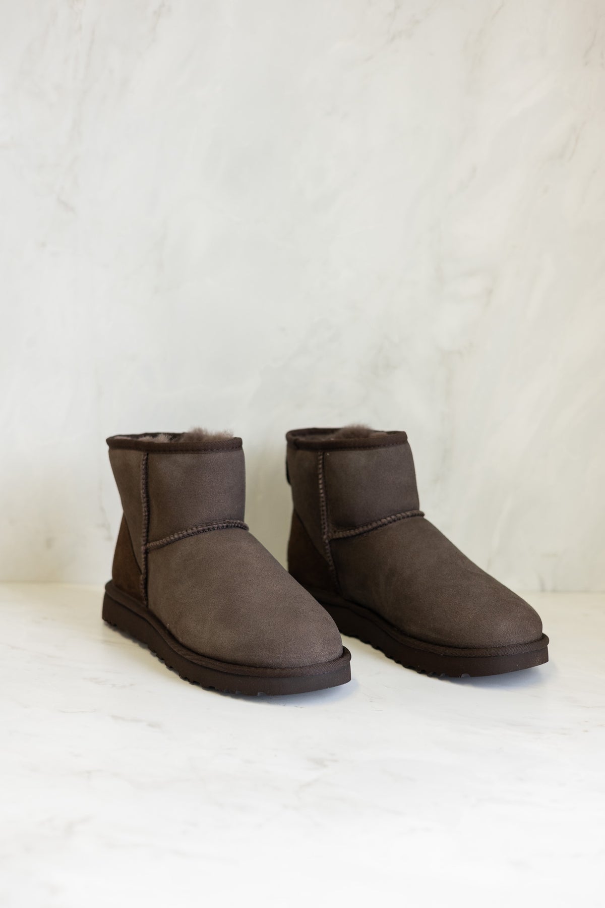 W Classic Mini II fra Ugg. Dette er den kortere varianten av den ikoniske booten. Den holder deg varm og komfortabel gjennom hele dagen, og er lett på foten.