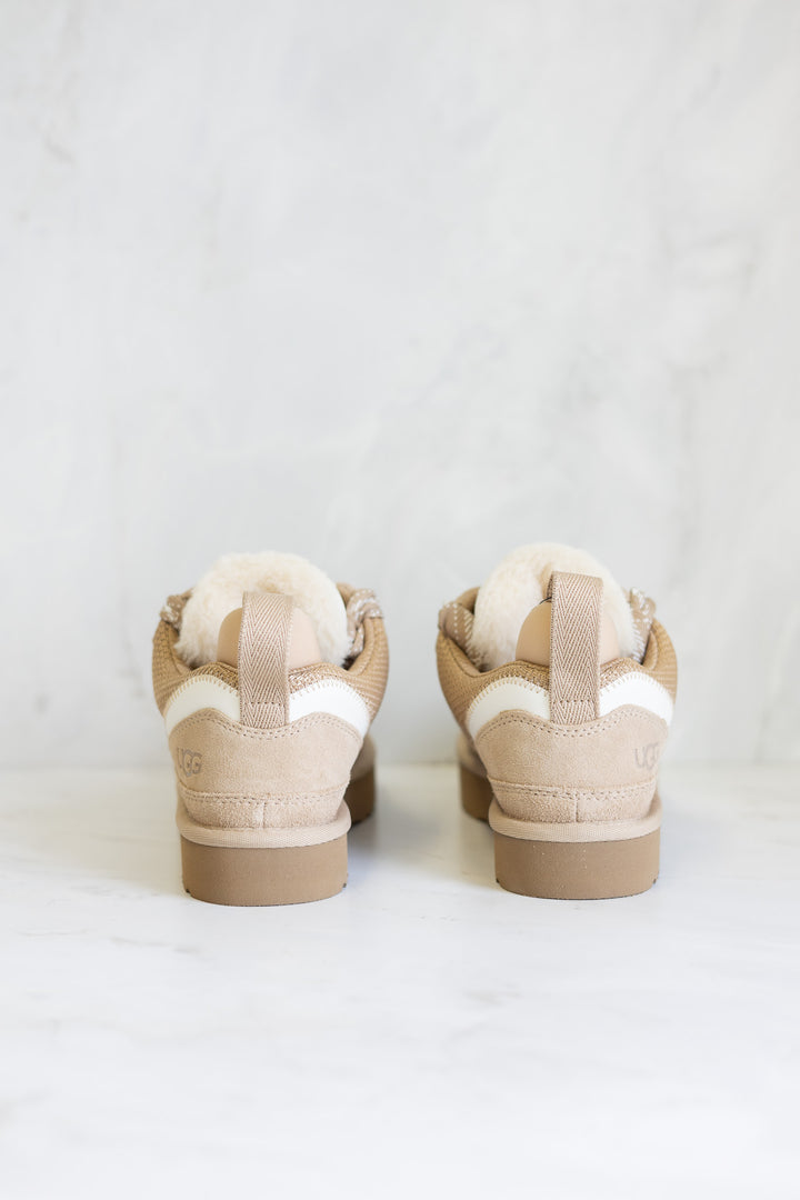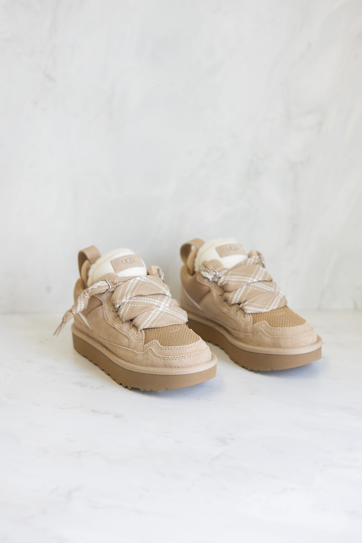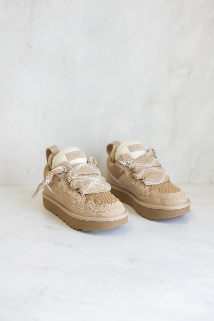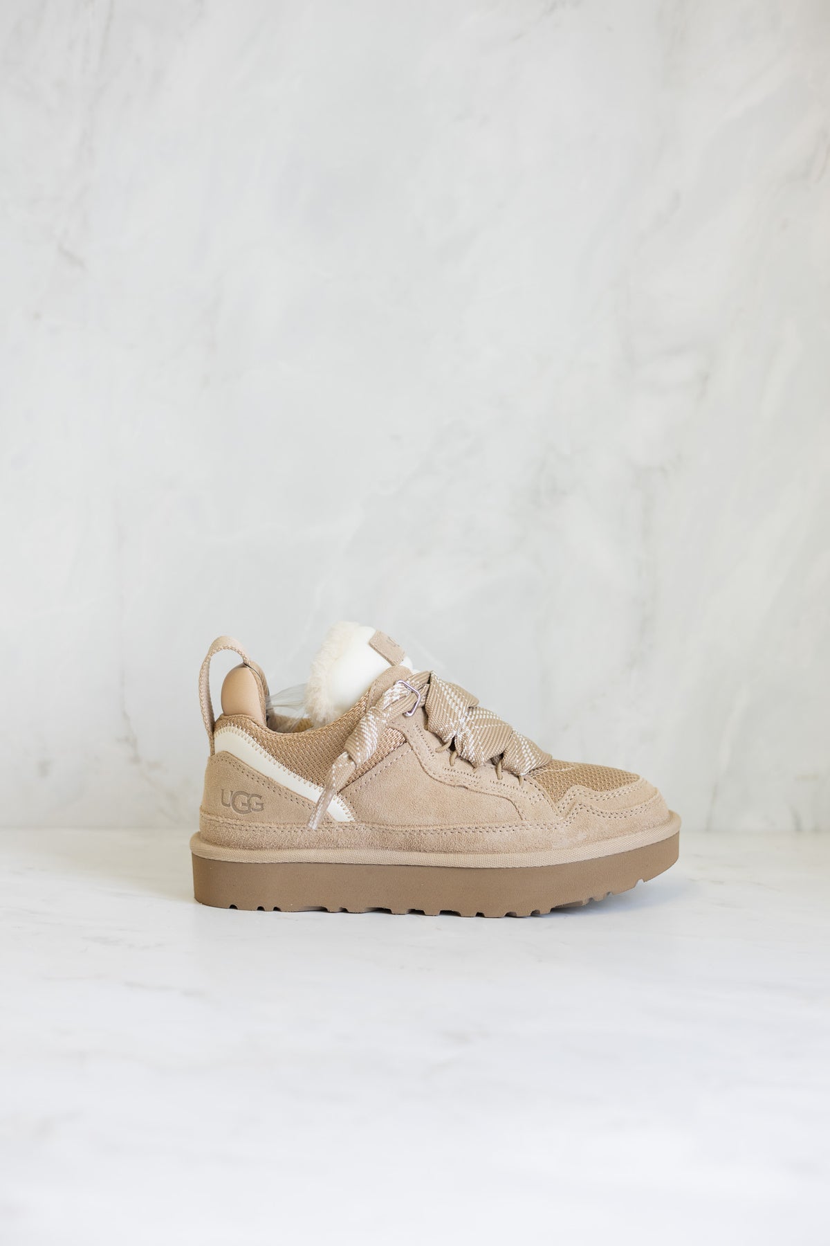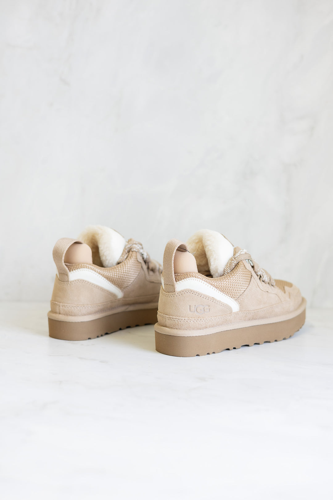 W Lowmel fra Ugg. Dette er en allsidig sko som er laget av solid canvas og mykt semsket skinn med lisser laget av et 100% resirkulert materiale. Dette er en sneaker som gir uanstrengt stil med overdimensjonert polstring for økt komfort og en uanstrengt kul look.