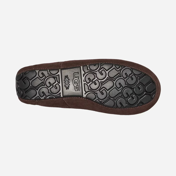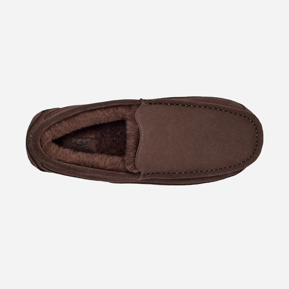 M Ascot fra Ugg. Sko til herre med utseende til en loafer og mykhet til en tøffel, er Ascot blitt en favoritt. Den har en slitesterk såle som gjør at den kan brukes både innendørs og utendørs. Overdel i semsket skinn med et mykt fôr i ull.