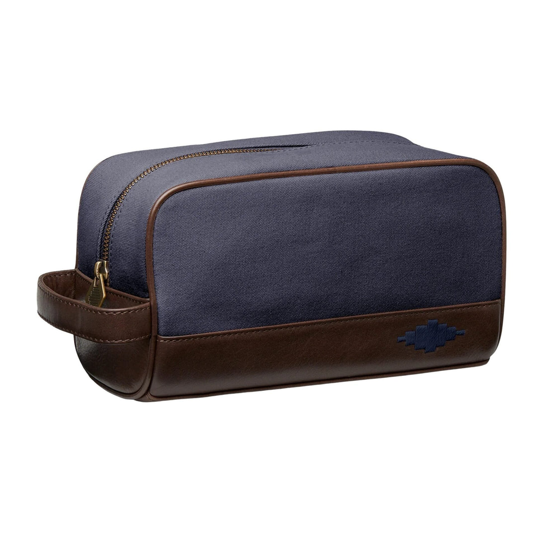 Hombre Washbag - Brown Leather and Navy Canvas with Navy Stitching
