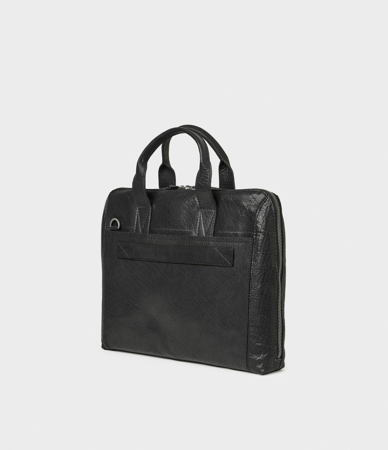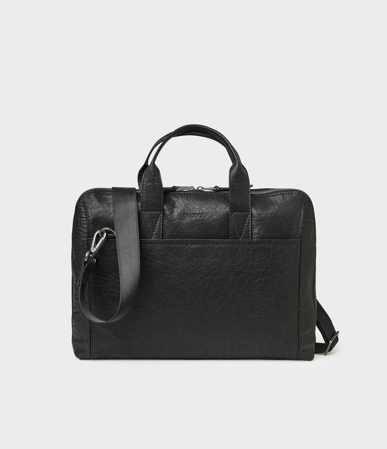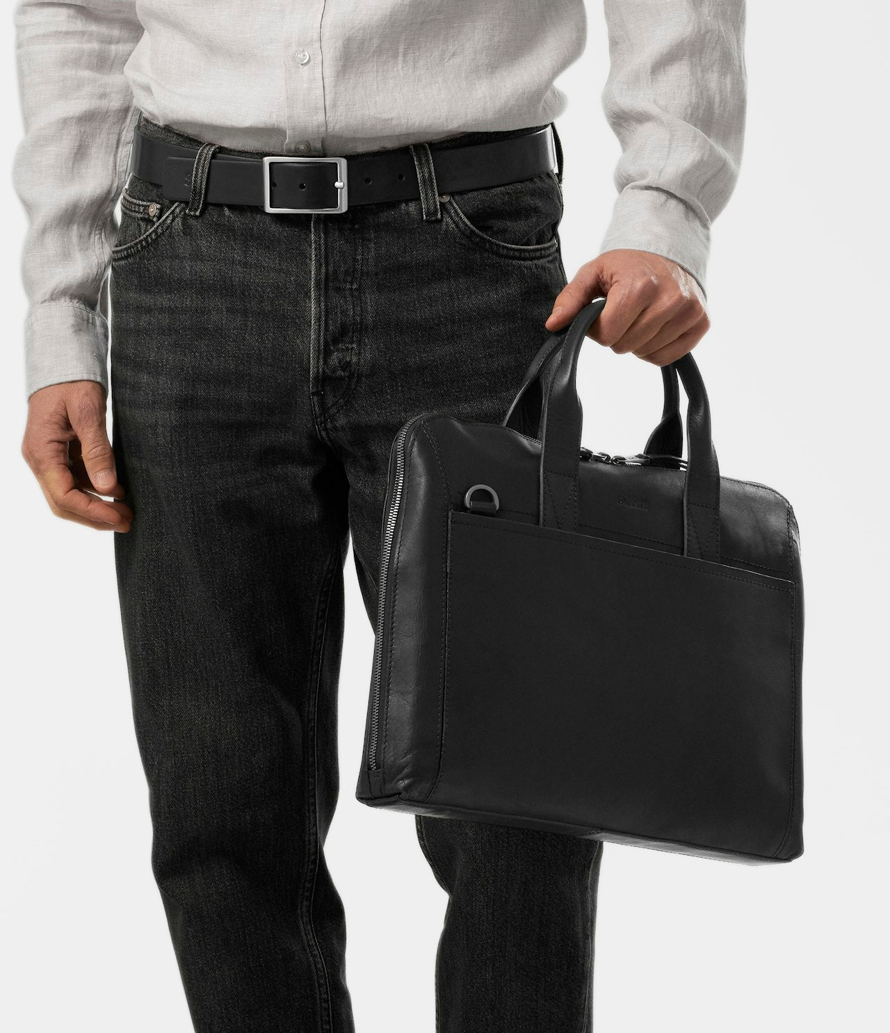 En raffinert og tidløs PC-veske i mørkebrunt bøffelskinn, designet for deg som ønsker stil og funksjon i ett. Vesken rommer plass til en laptop opptil 15″ og tilbyr flere innvendige lommer for effektiv organisering. På forsiden finnes en praktisk lomme med magnetlukking, og på baksiden sitter en stropp for å feste vesken til en trillebag. Vesken leveres med avtagbar og justerbar skulderstropp i tekstil med skinn­detaljer, noe som gir fleksibel bæring både som skulderveske og håndveske. Materialet er fullnarvet bøffelskinn med naturlig overflate som eldes med karakter.