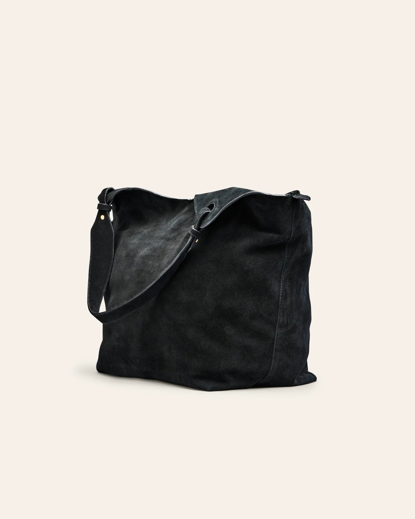 Country of origin: IT / Material composition: 100% Leather Inner lining: No lining / Material: Suede / Family: softi / Category: bags / Subcategory: tote /Dimension: 33,5 x 29,5 x 20 cm / Handle drop: 28 cm / Shoulder strap drop: / Adjustable shoulderstrap: N/A / Dust bag (yes/no): Yes / Product description: Features: Carabin hook in the middle. Brass hardware. Wide slip-in pocket. Laptop friendly. Comes with dust bag. / HS Code: 4202.21.00