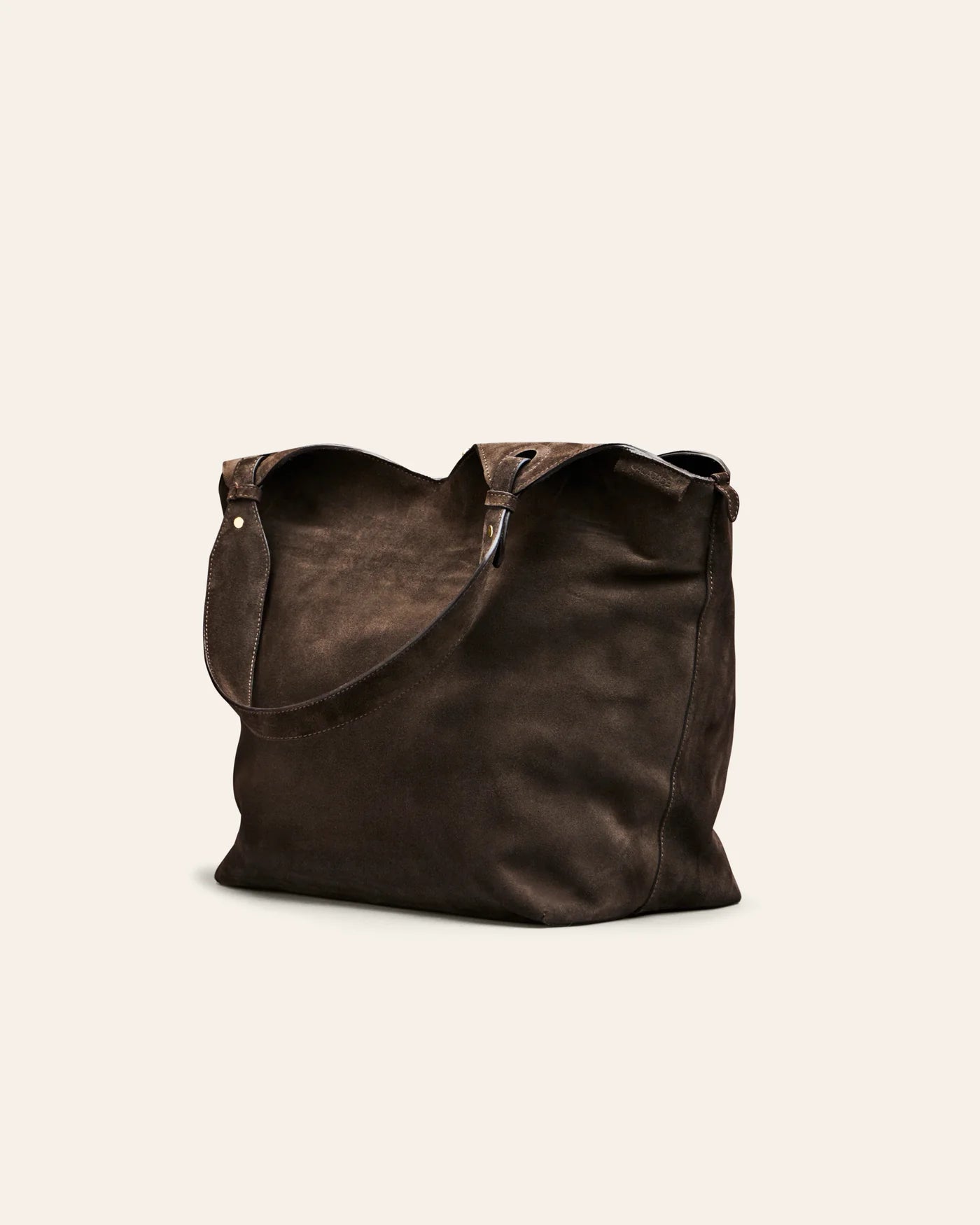 Country of origin: IT / Material composition: 100% Leather Inner lining: No lining / Material: Suede / Family: softi / Category: bags / Subcategory: tote /Dimension: 33,5 x 29,5 x 20 cm / Handle drop: 28 cm / Shoulder strap drop: / Adjustable shoulderstrap: N/A / Dust bag (yes/no): Yes / Product description: Features: Carabin hook in the middle. Brass hardware. Wide slip-in pocket. Laptop friendly. Comes with dust bag. / HS Code: 4202.21.00
