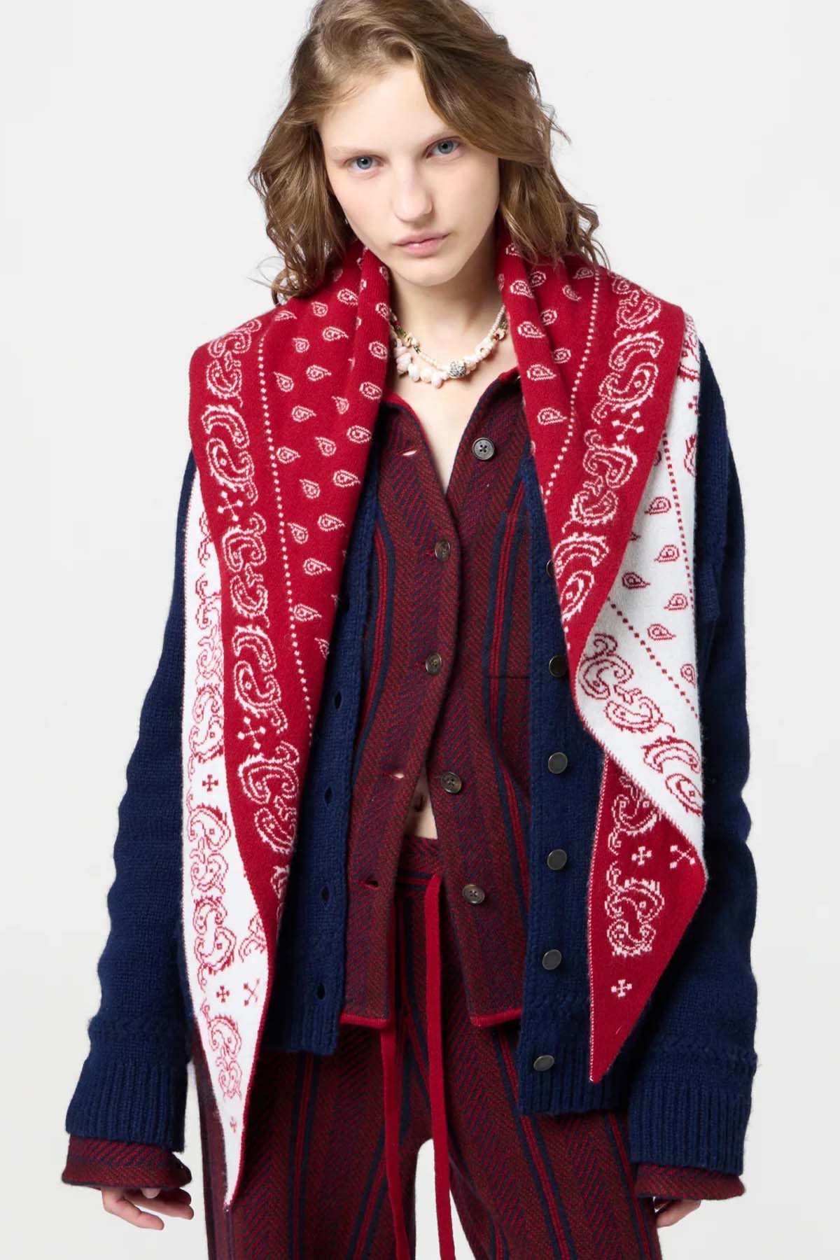 Sesongens hotteste tilbehør! Dette eksklusive skjerfet fra Guest in Residence er en moderne tolkning av den klassiske bandanaen, designet for deg som verdsetter både luksus og tidløs stil. Skjerfet er laget i deilig, myk, 100% kashmir. Skjerfet er tosidig, med rød og cream på den ene siden, og cream og rød på den andre siden. Perfekt å style til skjorter, strikk eller utenpå kåpen.