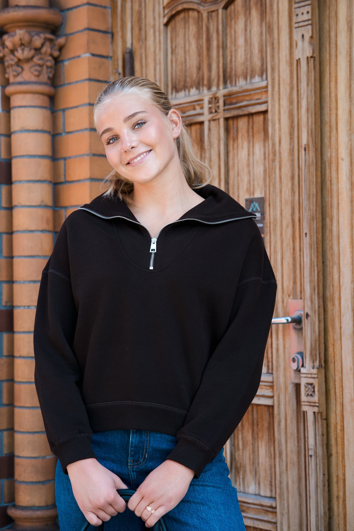 Maya PMO Incrustation fra Zadig & Voltaire. Sweatshirt med en avslappet passform, hette med glidelåslukking og med rhinestones detaljer bak. Denne genseren er perfekt å bruke til hverdag sammen med en jeans.