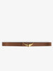 Vendbart belte i grained skinn, 30 mm bredt, med det ikoniske Wings-detaljet på spennen.
