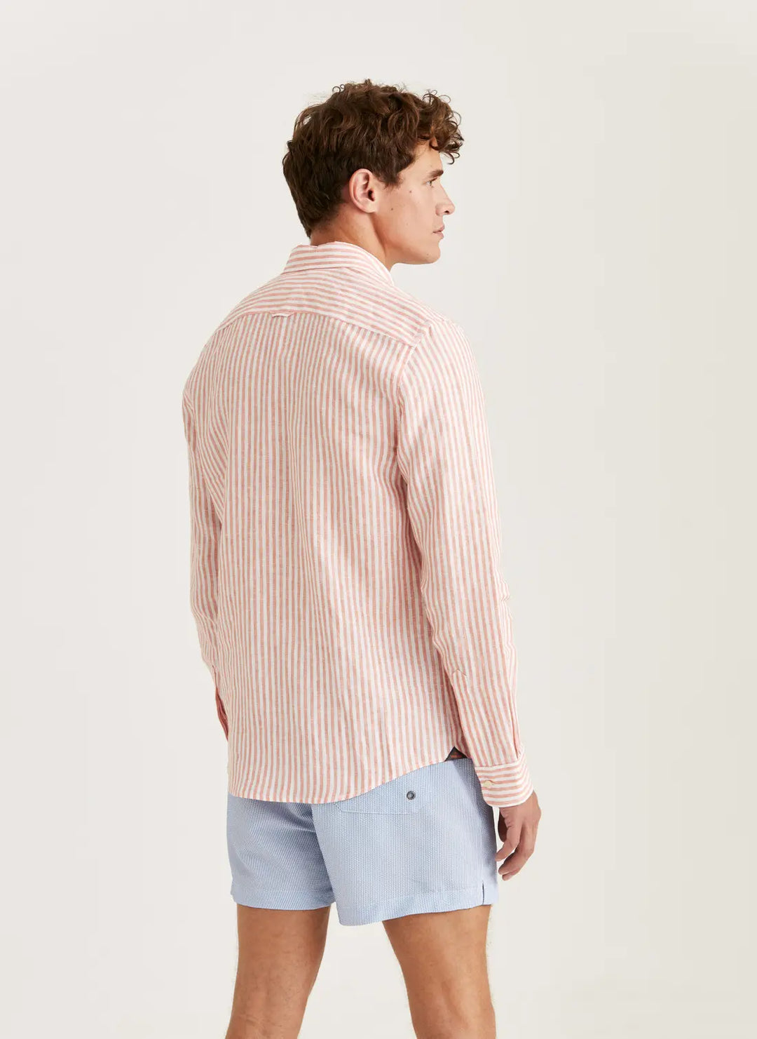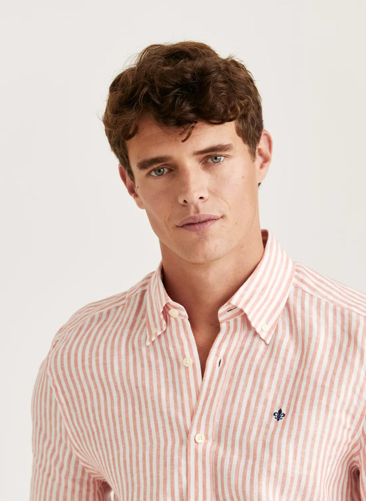 Douglas er en klassisk linskjorte fra Morris. Den har en rett fasong, knapper hele veien i front og på kragen, den gjenkjennelige logoen brodert på brystet og enkel cuff nederst på ermene.