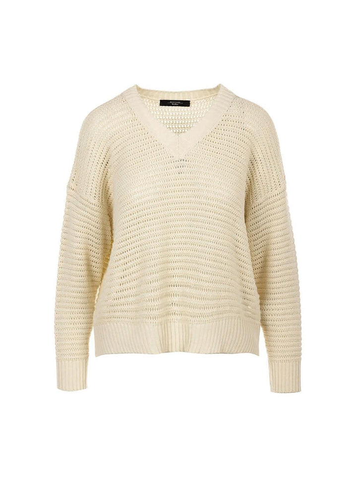 Bellico er en deilig strikket genser laget i bomull. Genseren har en rett fasong, V-hals, rette ermer og ribbestrikkede kanter.