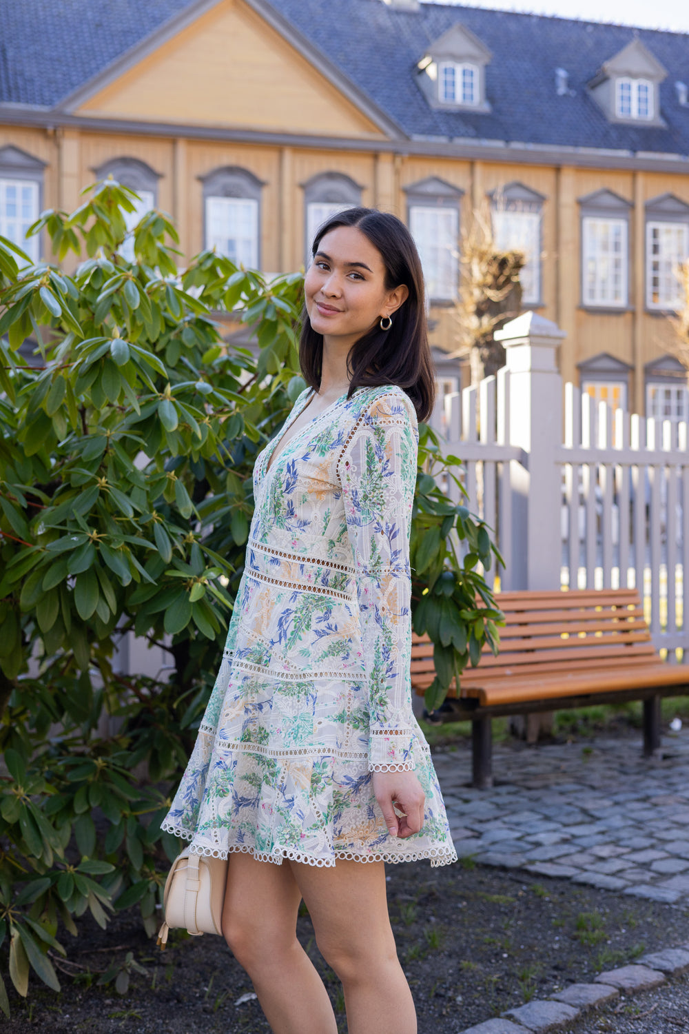 Ellie mini dress i ny farge for sesongen. En tidløs favoritt for enhver anledning. Kjolen er designet i et flatterende snitt, med innsvinget midje og et luftig skjørt. Den har en elegant V-hals og skjult glidelås bak i ryggen for enkel lukking.