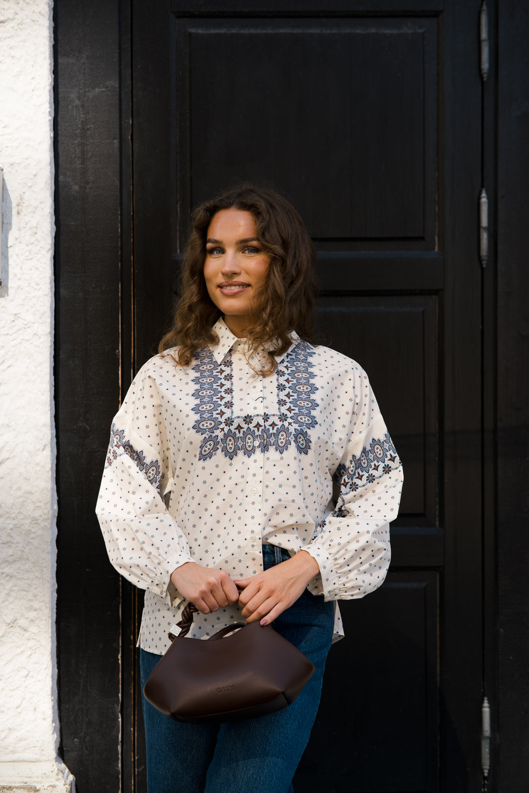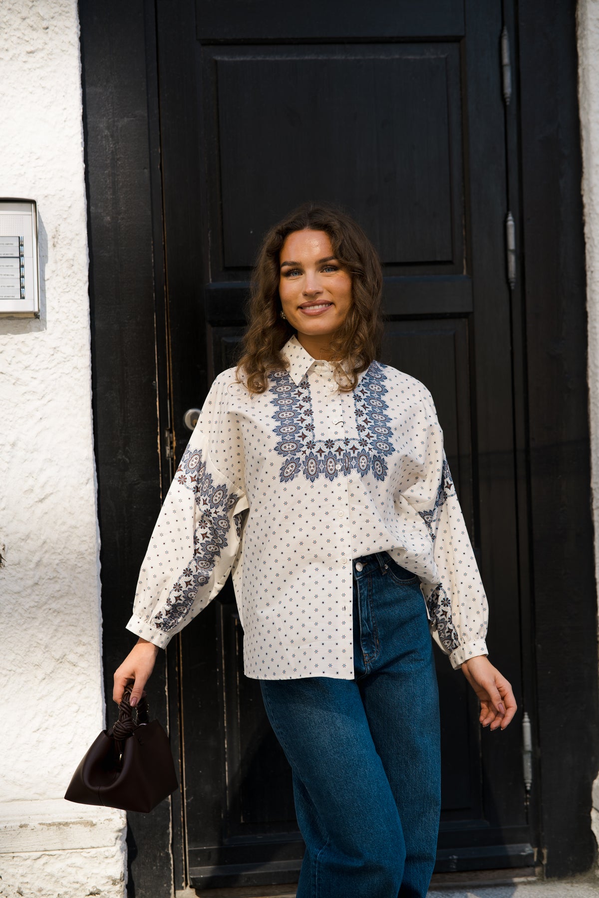 Adda Shirt fra Max Mara Weekend. En nydelig skjorte med en avslappet passform, liten splitt i siden og med et mønster som gir det lille ekstra. Skjorten er laget i ren bomull, med knapper foran og en klassisk krage. Perfekt å style til en jeans.