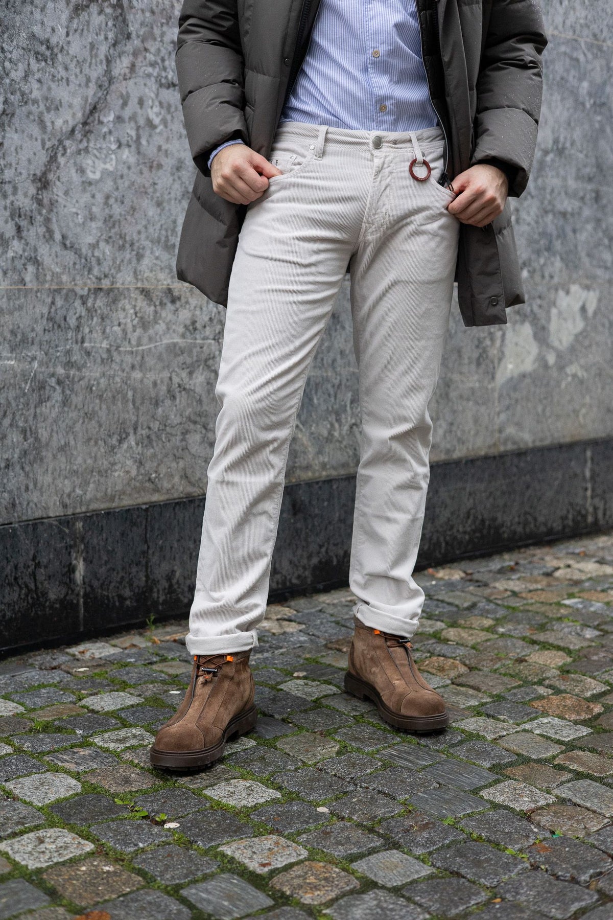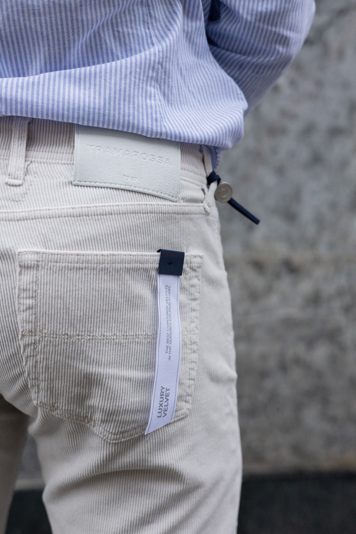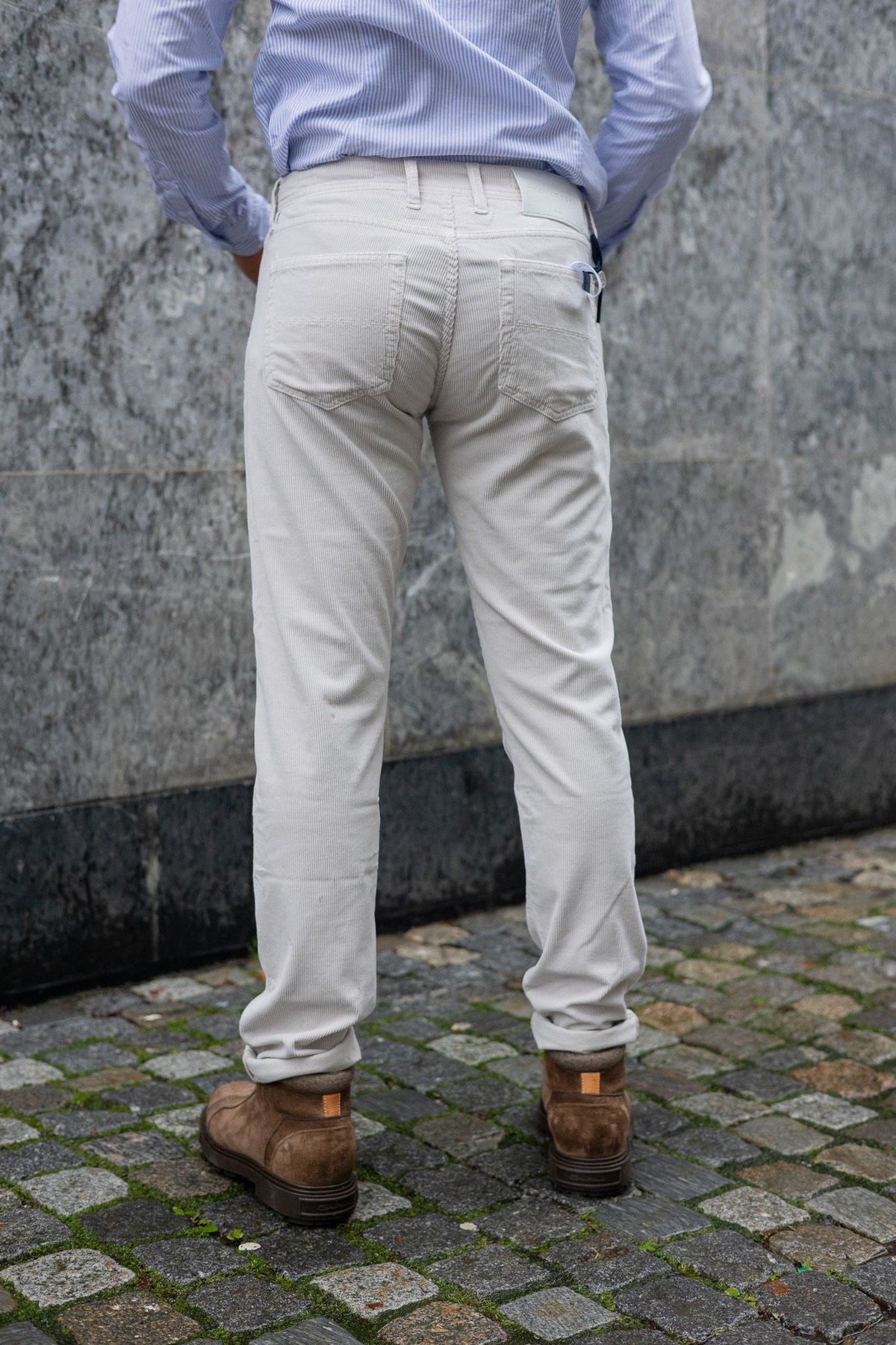En elegant cordbukse fra Tramarossa med en ton-i-ton patch som gir et diskret og sofistikert uttrykk. Den myke kordfløyelen gir en behagelig følelse og et tidløst preg, perfekt for både hverdagsbruk og mer formelle anledninger. En bukse som kombinerer italiensk eleganse med førsteklasses komfort og kvalitet.