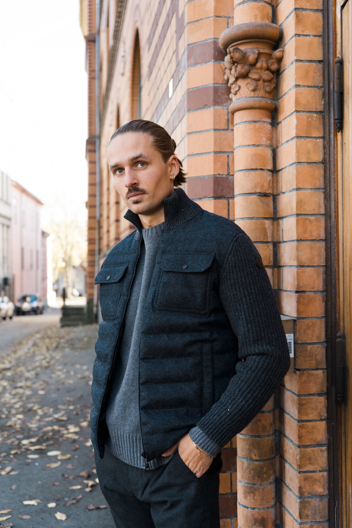 Country of origin: TUNISIA / Ext. Composition: OUTER FRONT: 100%VIRGIN WOOL - LEATHER TAG: 100%REAL LEATHER - BASE FABRIC: 100%VIRGIN WOOL / Int. Composition: FRONT LINING: 100%POLYAMIDE/NYLON - DETAILS PADDING: 100%POLYESTER / Filling Composition: DOWN 90% + FEATHER 10% / Down Colour: EXTRA WHITE / Fur type: / Category: KNITWEAR / Subgroup: CARDIGAN / Construction: KNIT / Sleeve type: LONG SLEEVE / Position: / Lining: PARTIAL LINING / Knit: STRAIGHT / Product care: 0 - Do not wash/0 - Do not bleach/0 - Do not tumble dry/1 - Ironing maximum temperature 110°C - without steam/1 - Dry cleaning with hydrocarbons - mild process/0 - Do not professionally wet clean/1 - Flat dry in the shade / HS code: 61101130