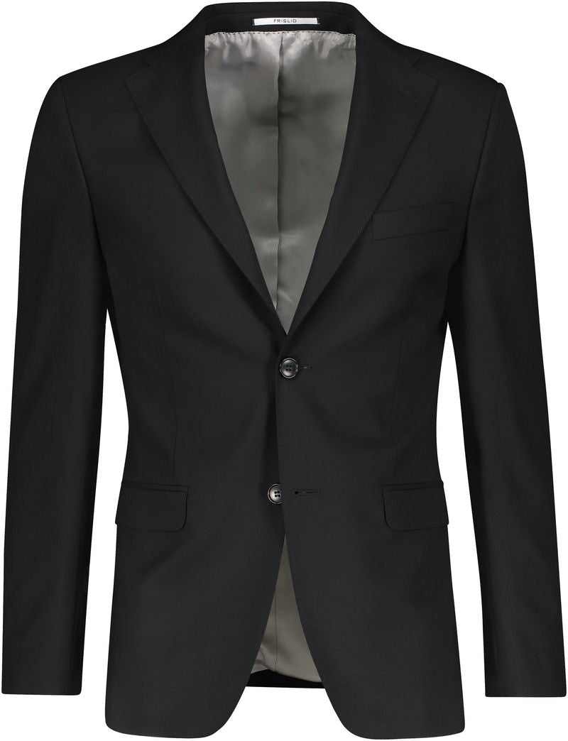 En klassisk svart dressjakke i 100% ull fra Frislid. Jakken har et tidløst snitt og rene linjer som gjør den til et sikkert valg både på jobb og til formelle anledninger. Kombiner med den tilhørende dressbuksen og vesten for en komplett dress.