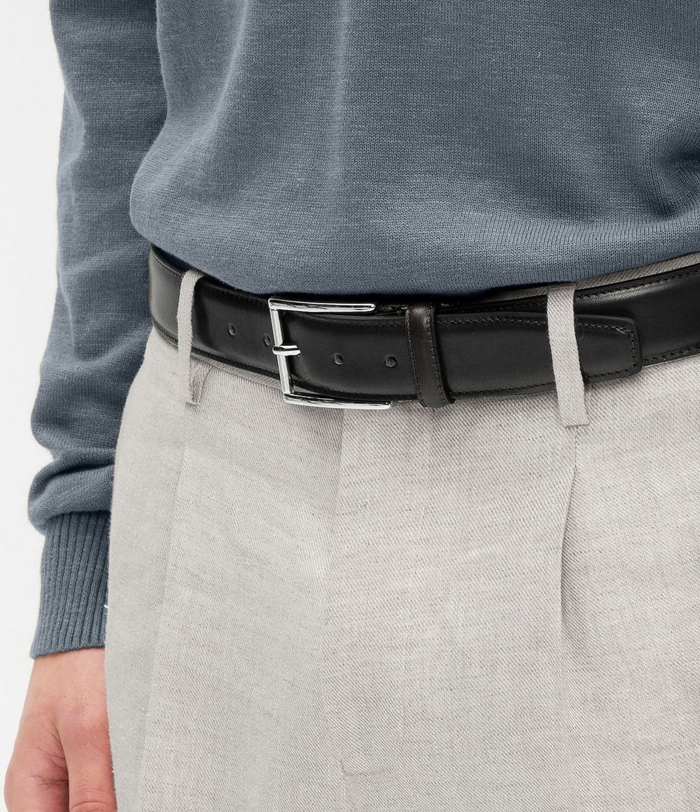 Skinnbelte Arthur fra Saddler. Klassisk herrebelte med bearbeidede detaljer, i vegetabilsk garvet fullnarvet skinn med naturlig blank finish. Beltet har et lett buet fyll og er dekorert med pene sømmer. Sammen med en diskré og stilren spenne gir den et pyntet inntrykk, et perfekt supplement til dressbukser. Spenne i blankt, sølvfarget metall. Skinnet i dette produktet er av høyeste kvalitet og har blitt behandlet i et garveri som er sertifisert av Leather Working Group. Beltet i størrelsene 105 til 120 er konstruert med en skrue som gjør det mulig å korte ned og justere størrelsen på beltet.