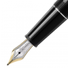Pennens hette og kropp er laget av svart harpiks, med det ikoniske hvite Montblanc-emblemet elegant inntakt på hettens topp. Fyllepennen har en håndlaget Au585/14K gullsplitt belagt med rhodium, som gir den et sofistikert og tidløst uttrykk.