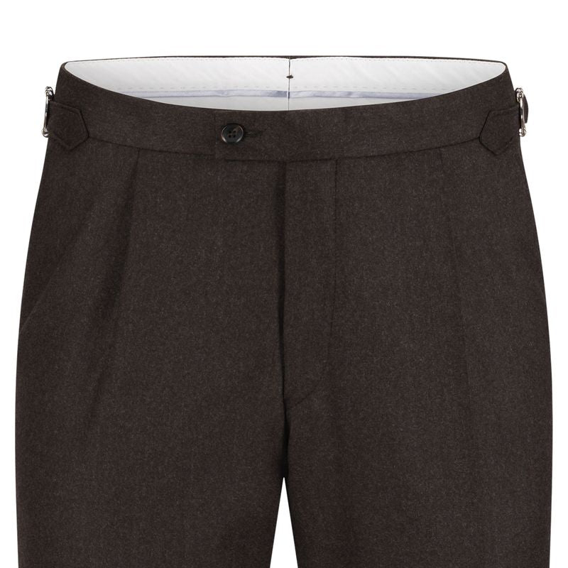 Frislid Hanko er en klassisk bukse i myk flanellull som gir både varme og komfort. Modellen har en litt videre fasong over lårene, legg i front og justerbare sideadjusters i livet for en passform som sitter godt uten belte. Oppbretten nederst gir et stilsikkert preg. Buksen fungerer utmerket til blazer, men kan også matches med den tilhørende jakken for en komplett dress.