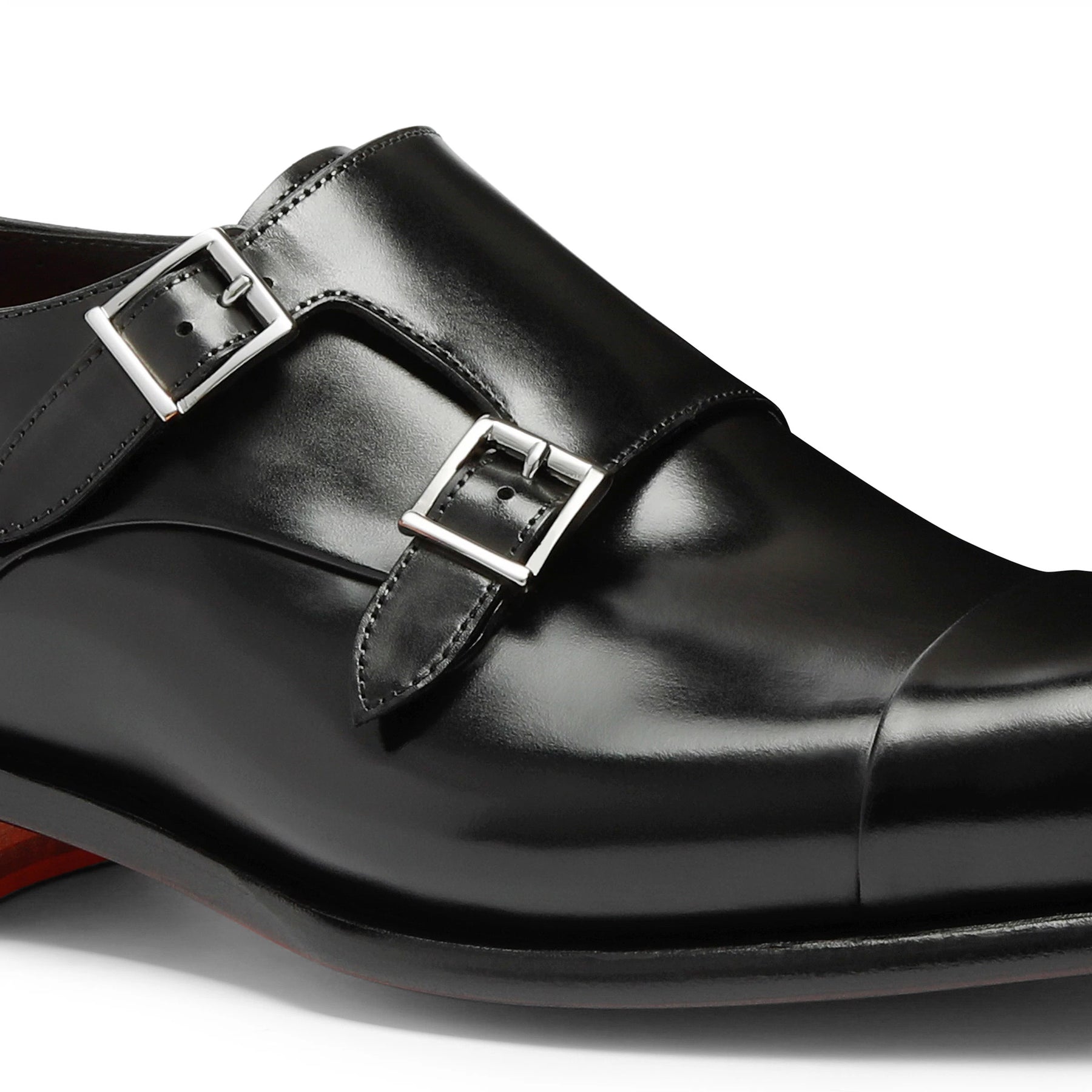 En klassisk dobbel monk strap fra Santoni, laget i glatt kalveskinn av høy kvalitet. Skoen har et tidløst og elegant uttrykk med rene linjer og justerbare spenner for optimal passform. Perfekt alternativ til dressko – en modell som kombinerer italiensk håndverk, stil og komfort. Modellen er ganske stor i størrelsen — vi anbefaler å gå ned en størrelse for best passform.